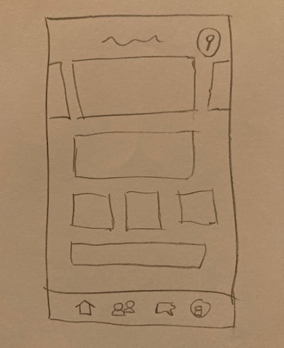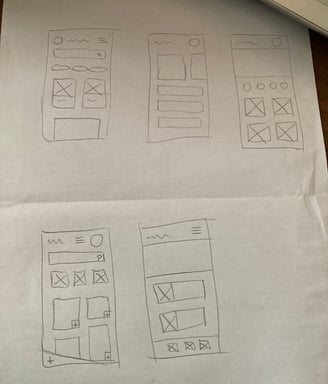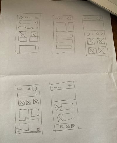 Foram criadas 5 versões diferentes da tela inicial do aplicativo em um esboço de papel, com o objetivo de facilitar a visualização das ideias. Após analisar todas as opções, selecionei as melhores características de cada desenho e uni todas elas para criar a home ideal. Esse processo me permitiu explorar diversas possibilidades e garantir que a tela inicial do aplicativo fosse a mais eficiente e atraente possível. O wireframe de papel foi uma ferramenta útil para organizar minhas ideias e tomar decisões fundamentadas durante o processo de design. Estou confiante de que essa versão da tela inicial irá proporcionar uma experiência positiva para os usuários.