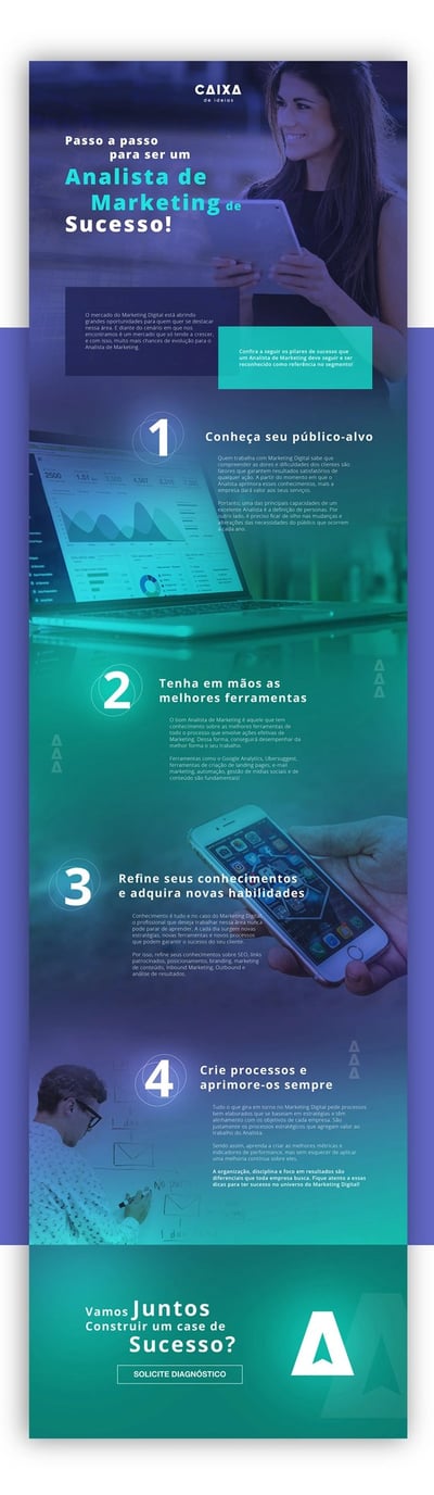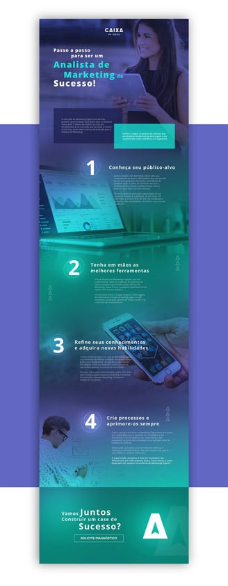 Todos os materiais ricos, como infográficos, papers e e-books, foram desenvolvidos seguindo a nova identidade visual da empresa. Esses materiais foram criados com a utilização de imagens sobrepostas e tecnológicas, o que confere uma aparência moderna e atualizada às artes. Através desses recursos visuais, buscamos transmitir de forma clara e atrativa as informações contidas nos materiais, tornando-os mais interessantes e impactantes para o público-alvo.